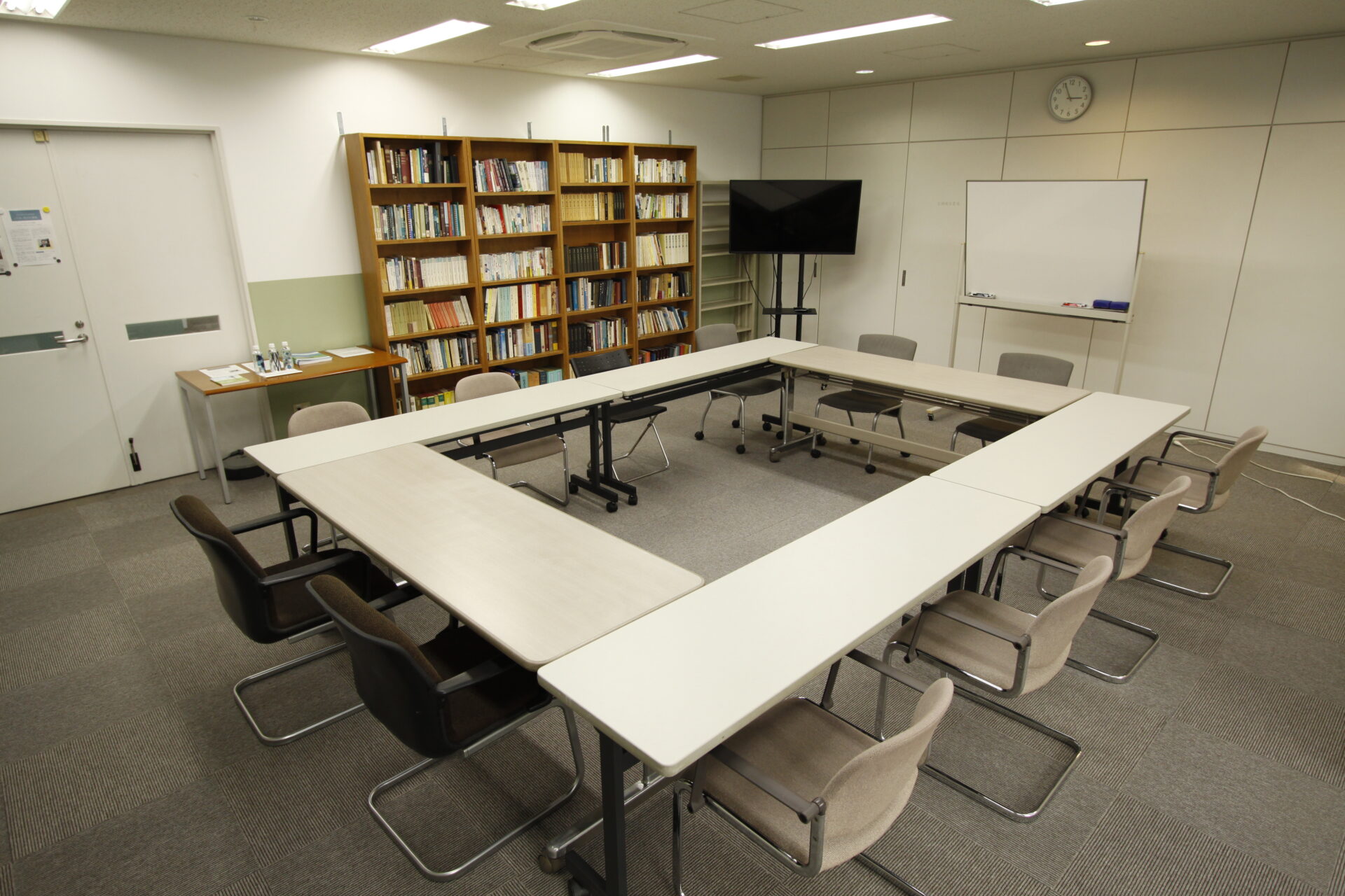 クリスチャンライフ学院では講師と学生の皆さんが対話をしやすい机と椅子の配置になっています。オンラインの学生の方は講師と教室全体の2ショットを見ることが可能で、参加しやすい環境となっています。